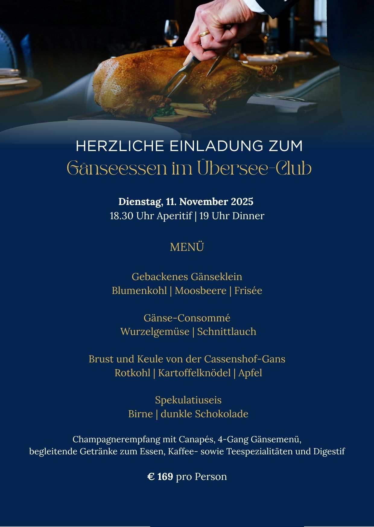 Für eine optimale Planung bitten wir unsere Mitglieder, sich jeweils mit einer kurzen E-Mail an: gastronomie@ueberseeclub.de anzumelden.