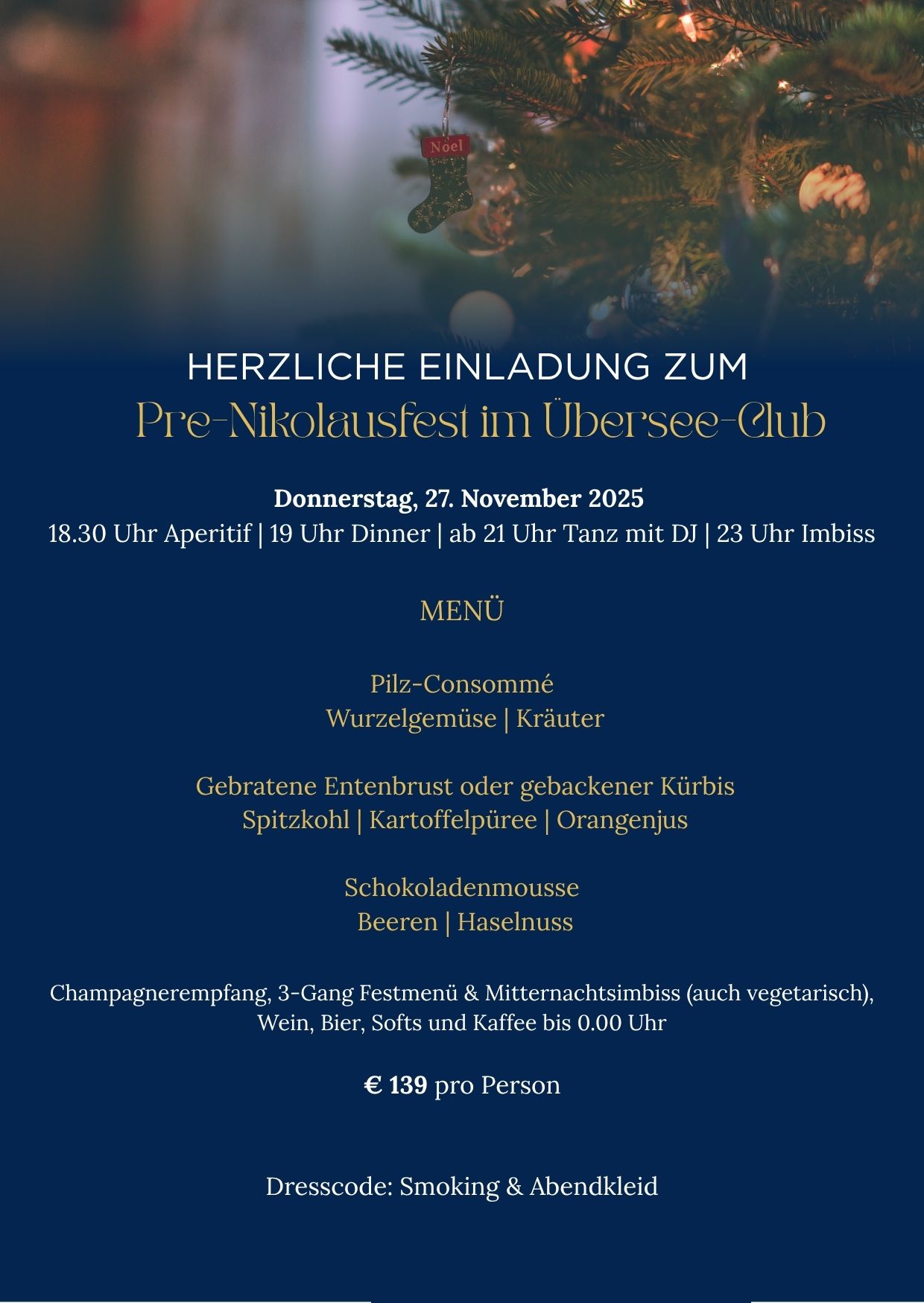 Alle Mitglieder und Gäste werden gebeten, darauf zu achten, dass die Kleidung stets dem Stil des Übersee-Clubs entspricht.